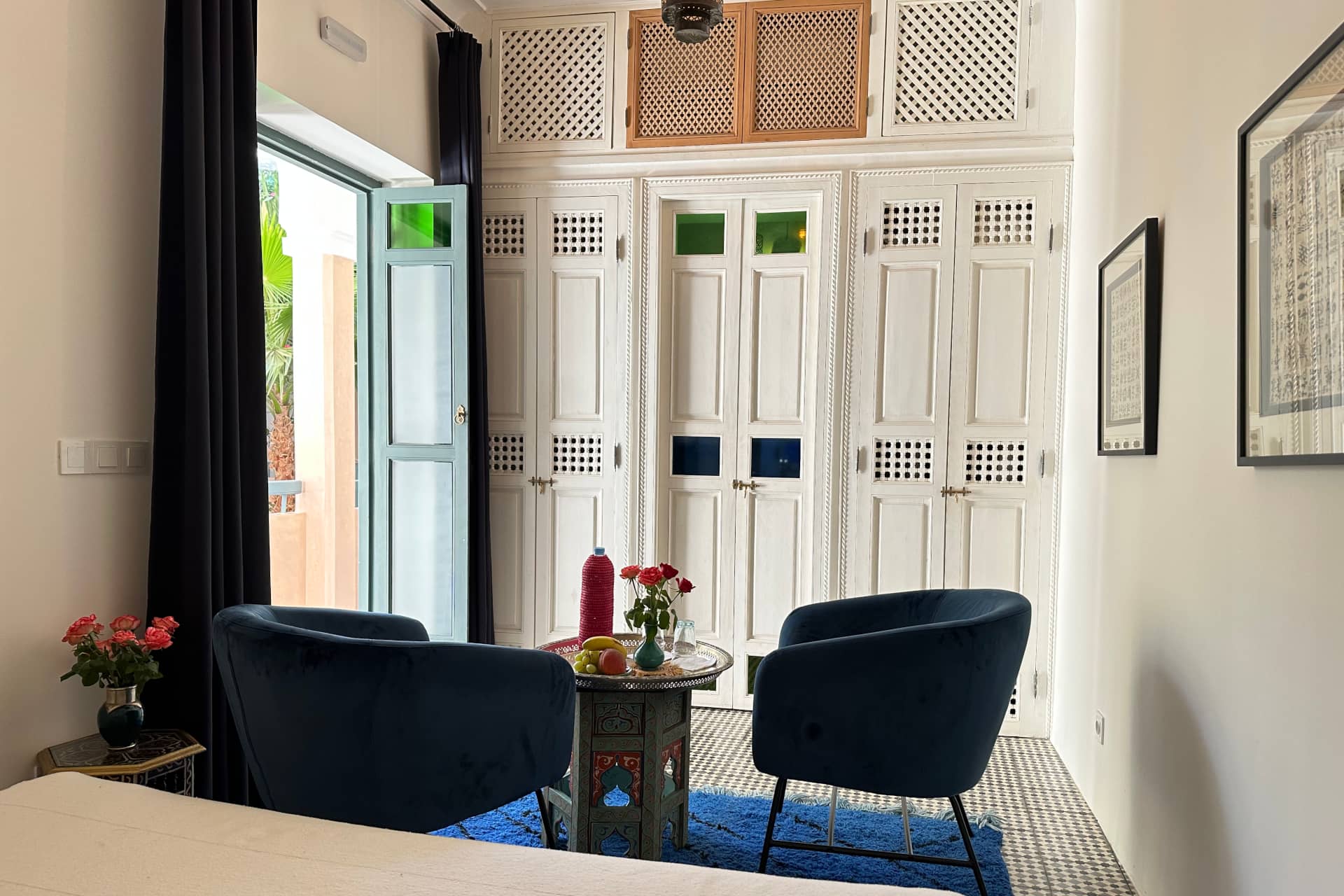 Lassen Sie sich von einem imposanten Farbenspiel in unserem Zimmer Chaibia verzaubern.